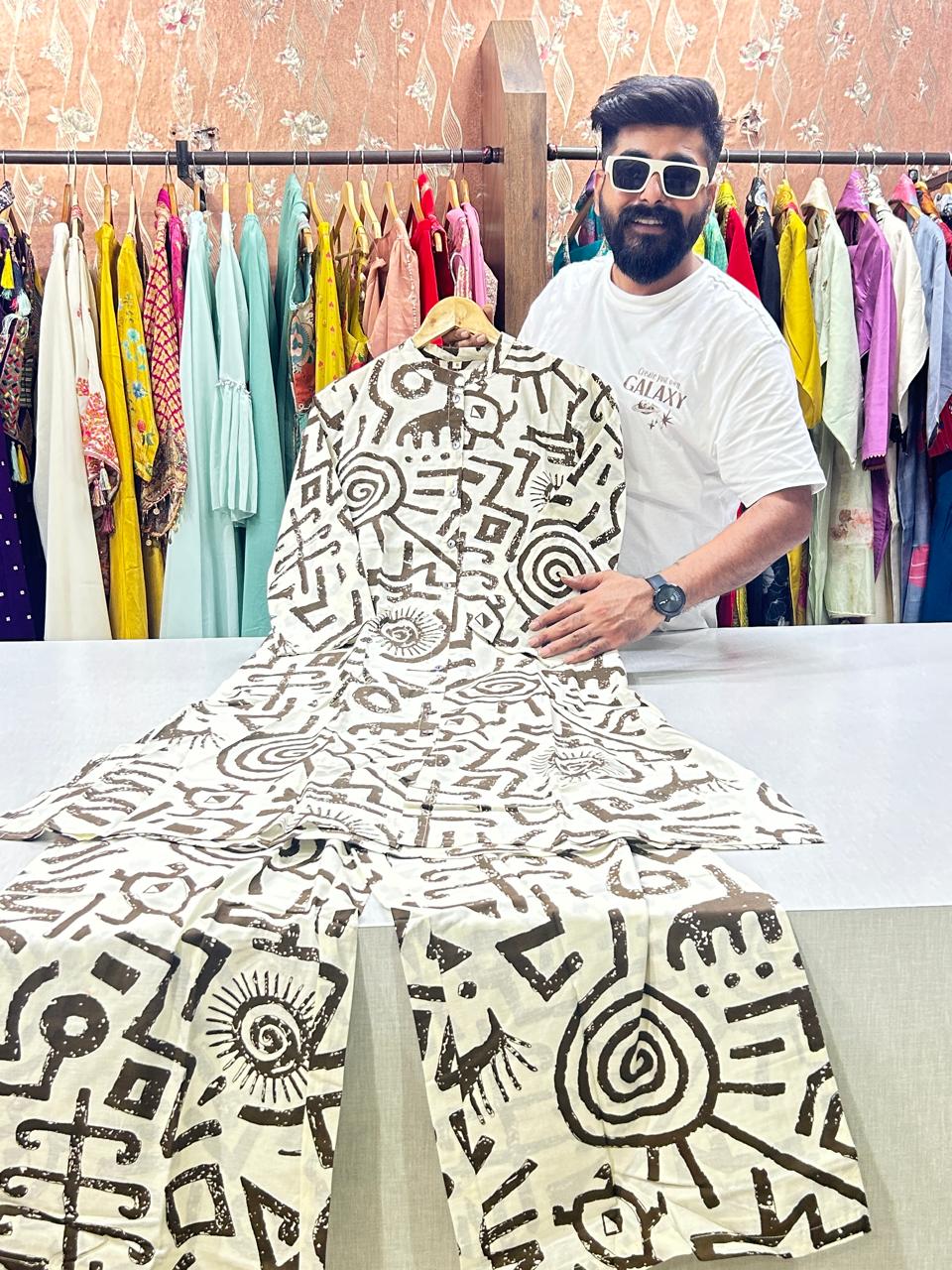 TWO PIECE A-LINE WHITE BROWN STITCHED SUIT